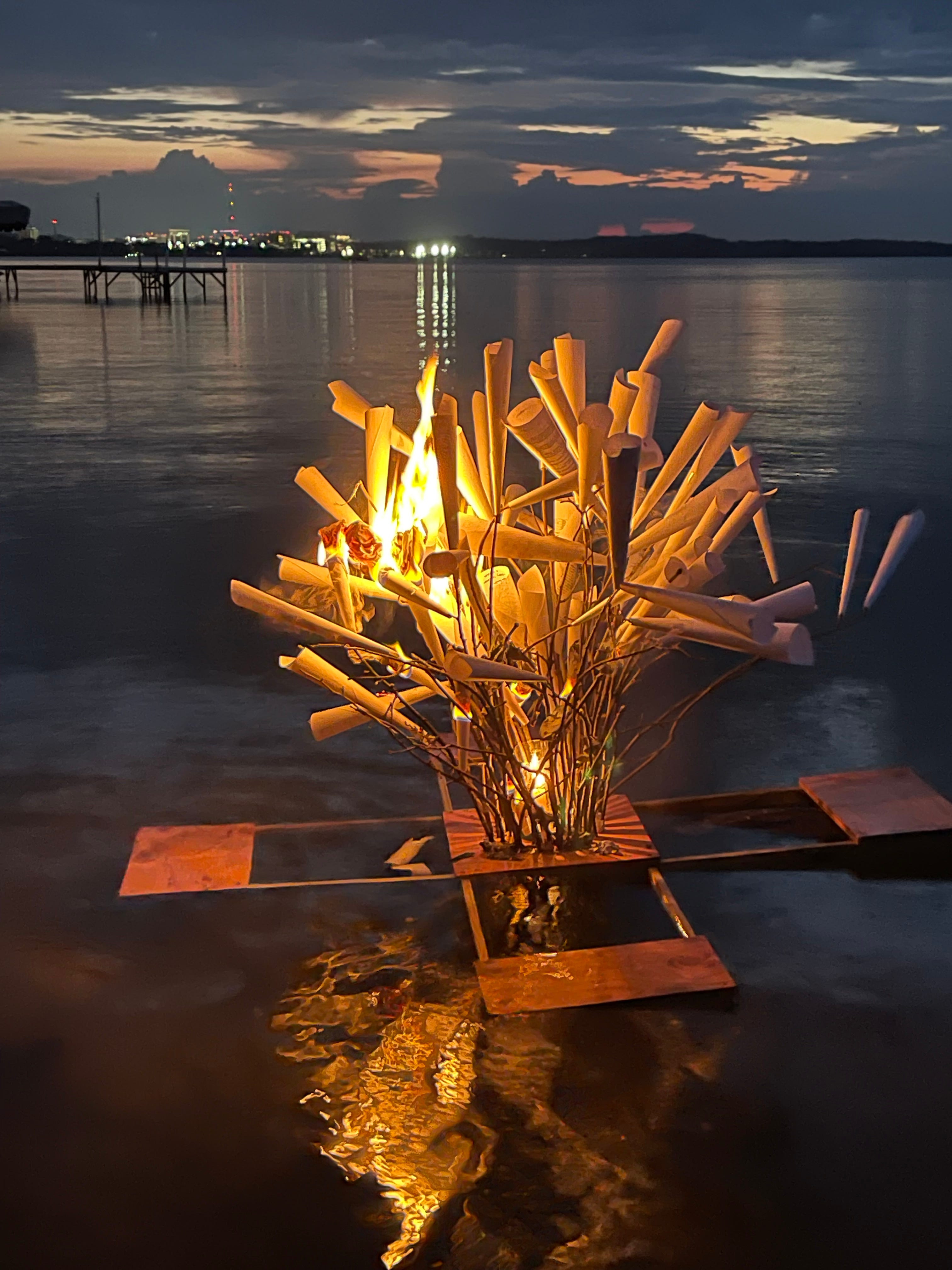 My friend collaborated with a fellow engineer and an artist friend of the couple to create a totem-like structure in his memory. His papers were placed into it like branches, forming a fragile symbolic body, and the structure was set alight on Lake Mendota in Madison, Wisconsin, along the shores of the campus where they had all once studied for their PhDs.